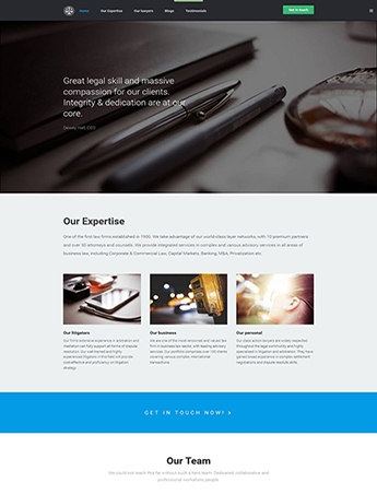 Template Luật JA Layer được thiết kế với ba màu sắc cơ bản (trắng, đen và xanh) đơn giản thể hiện sự tinh tế, nhẹ nhàng đồng thời việc đơn giản hóa thiết kế giúp người xem đọc và tìm những thông tin quan trọng một cách dễ dàng.