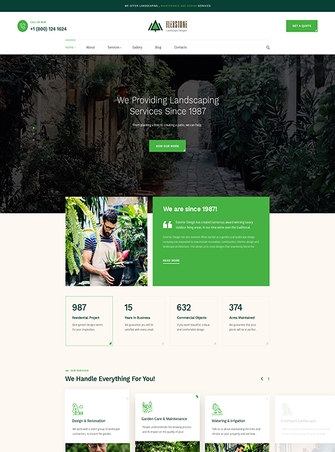 Được thiết kế cho website dịch vụ làm vườn, cảnh quan và cũng có thể áp dụng cho các lĩnh vực khácĐây là giải pháp hoàn chỉnh cho tất cả website liên quan đến dịch vụ làm vườn và hơn thế nữa |